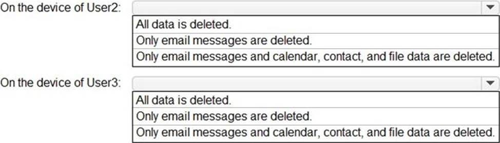 User1 and User3 use Microsoft Outlook for iOS and Android to access email from their mobile device. User2 uses a native Android email app.