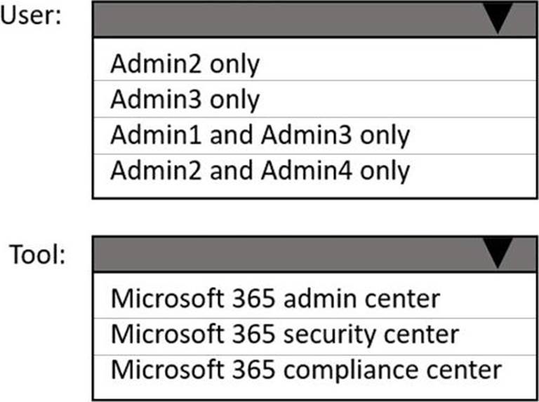 ✑ When users leave the company, remove their licenses and ensure that their mailbox is accessible to Admin1 and Admin2.