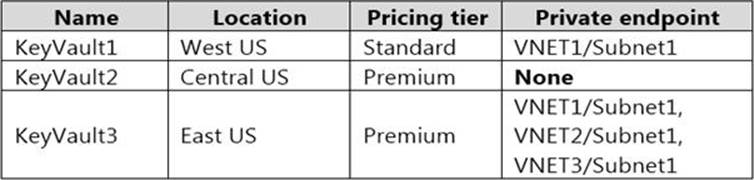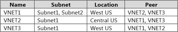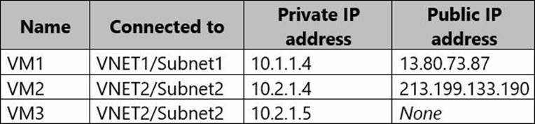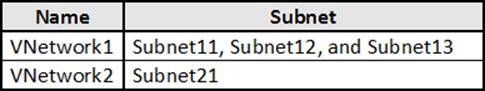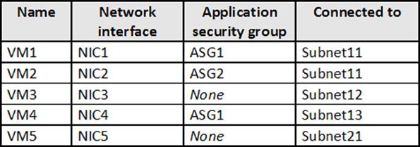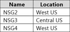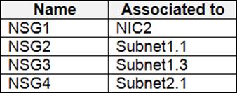 Sub2 contains the network security groups (NSGs) shown in the following table.