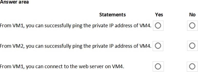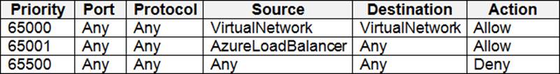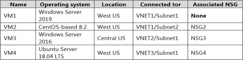 NSG1, NSG2, NSG3, and NSG4 have the outbound security rules shown in the following table.