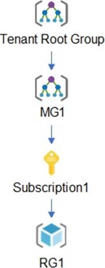 Sub1 contains six resource groups named RG1, RG2, RG3, RG4, RG5, and RG6.