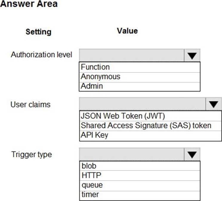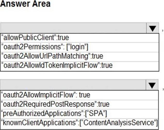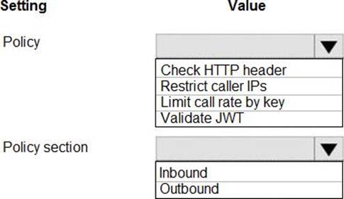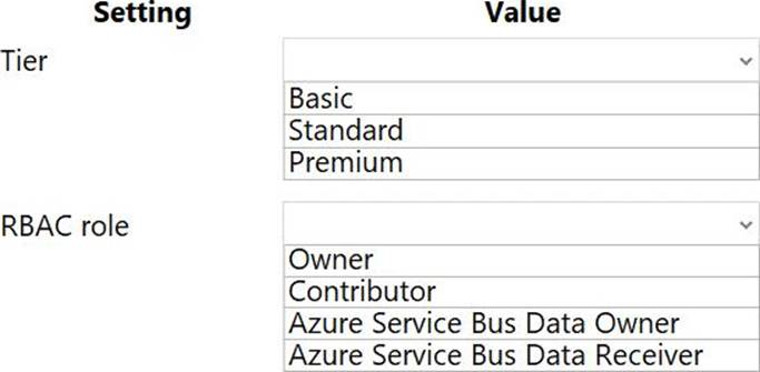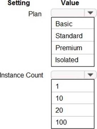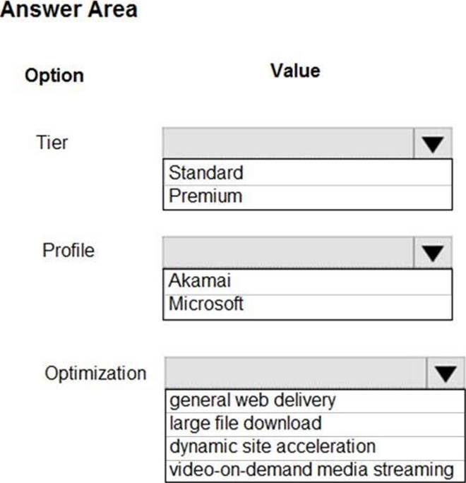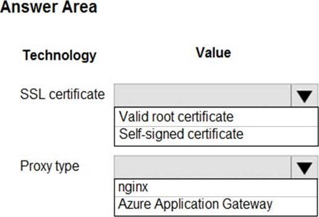 Which configuration values should you use? To answer, select the appropriate options in the answer area. NOTE: Each correct selection is worth one point.