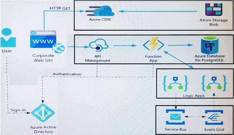 The company has a public website located at http://www.cpandl.com/. The site is a single-page web application that runs in Azure App Service on Linux. The website uses files stored in Azure Storage and cached in Azure Content Delivery Network (CDN) to serve static content.