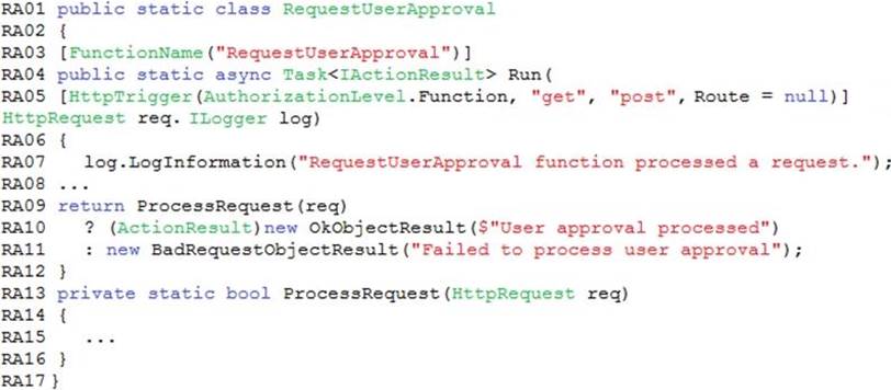 Troubleshooting of the error shows an HttpTrigger action to call the RequestUserApproval function.