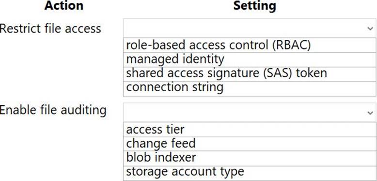 ✑ File access must restrict access by IP, protocol, and Azure AD rights.