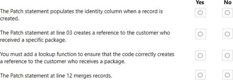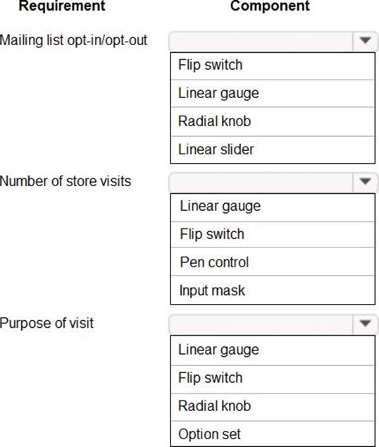 ✑ A canvas app is being developed to capture customer information when customers check in at the retail location. The app has the following features: