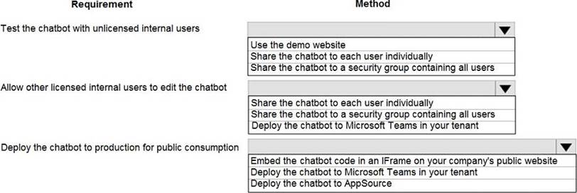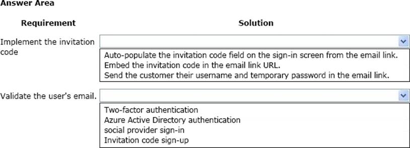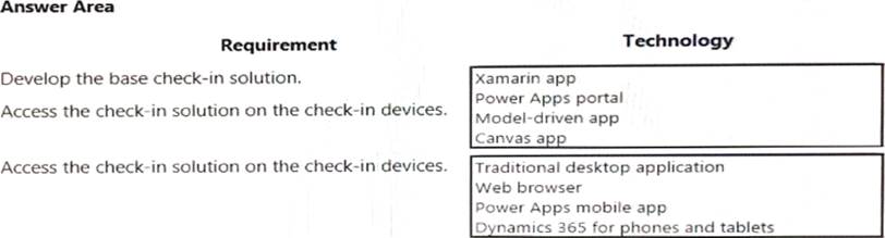 You need to embed the check-in solution into the communication solution. To answer, select the appropriate options in the answer area. NOTE: Each correct selection is worth one point.