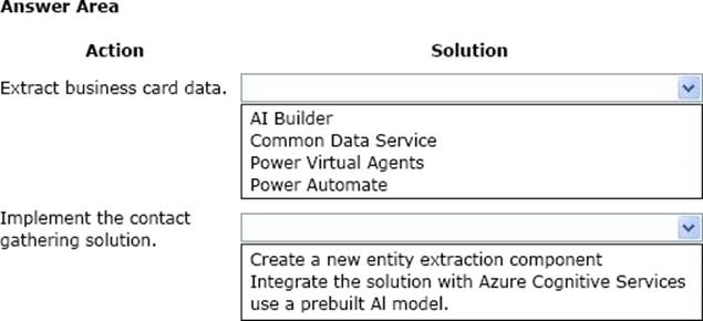 * To eliminate the handling of business cards, the check-in solution must be able to translate the contents of the business cards into Alpine Ski House's marketing system.