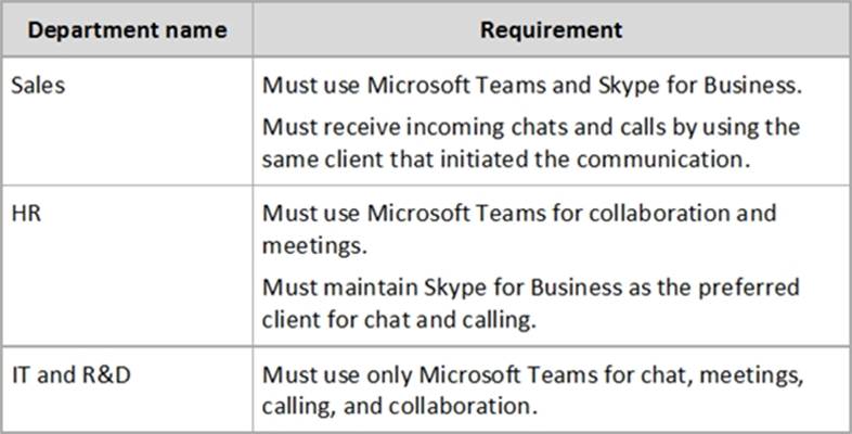 Litware identifies the following requirements for a planned upgrade from Skype for Business Online to Microsoft Teams: