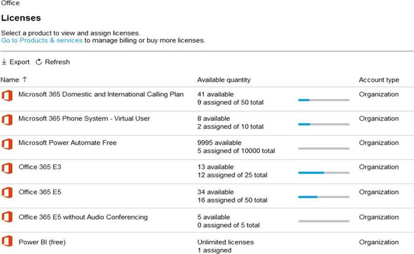 Litware has a Microsoft 365 subscription that has Office 365 Enterprise E3 licenses for all users. All the E3 products and services are enabled for each user.