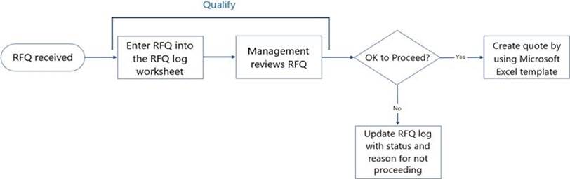 ✑ Each sales team maintains a spreadsheet in which they record customer requests for quotes (RFQs). The spreadsheets are stored on a network drive.