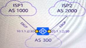 1. As shown in the figure, network administrator A on the R1 router, after modifying the Local Preference value of the routing entry sent to R2 through the routing policy, can control the path of traffic leaving AS100.