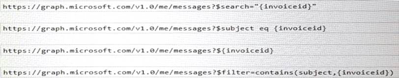 You have the following JSON message that will be sent by the Microsoft Graph service to detect the vendor emails.