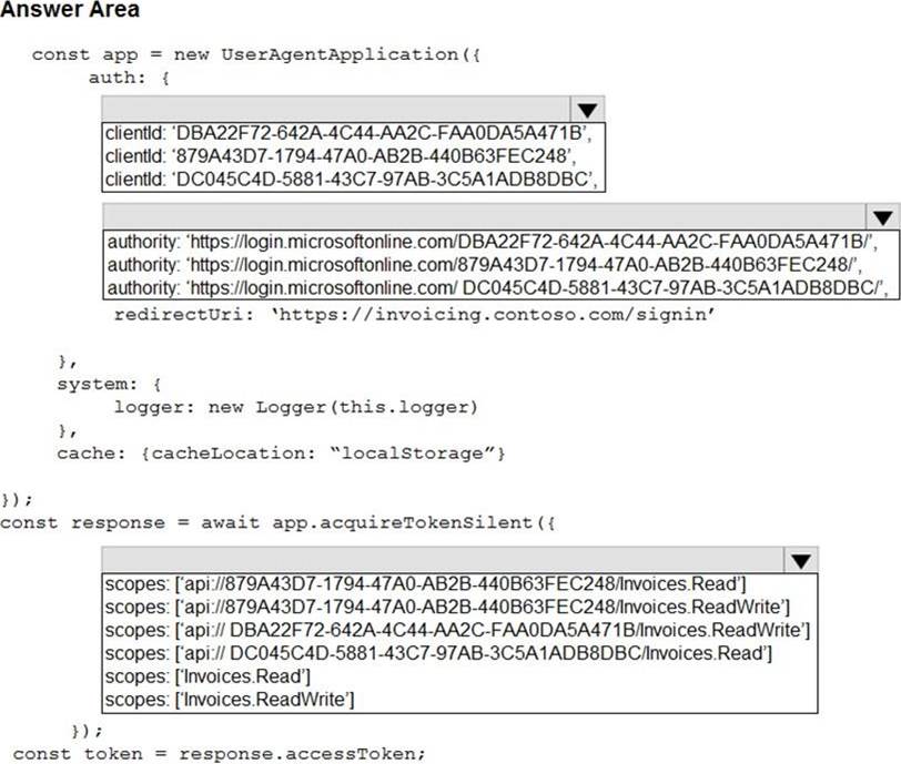 You plan to implement SSO with Microsoft Authentication Library (MSAL) by using the following code: