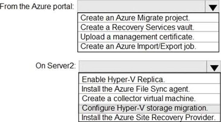 • Migrate the virtual machines hosted on Server1 and Server2 to Azure.